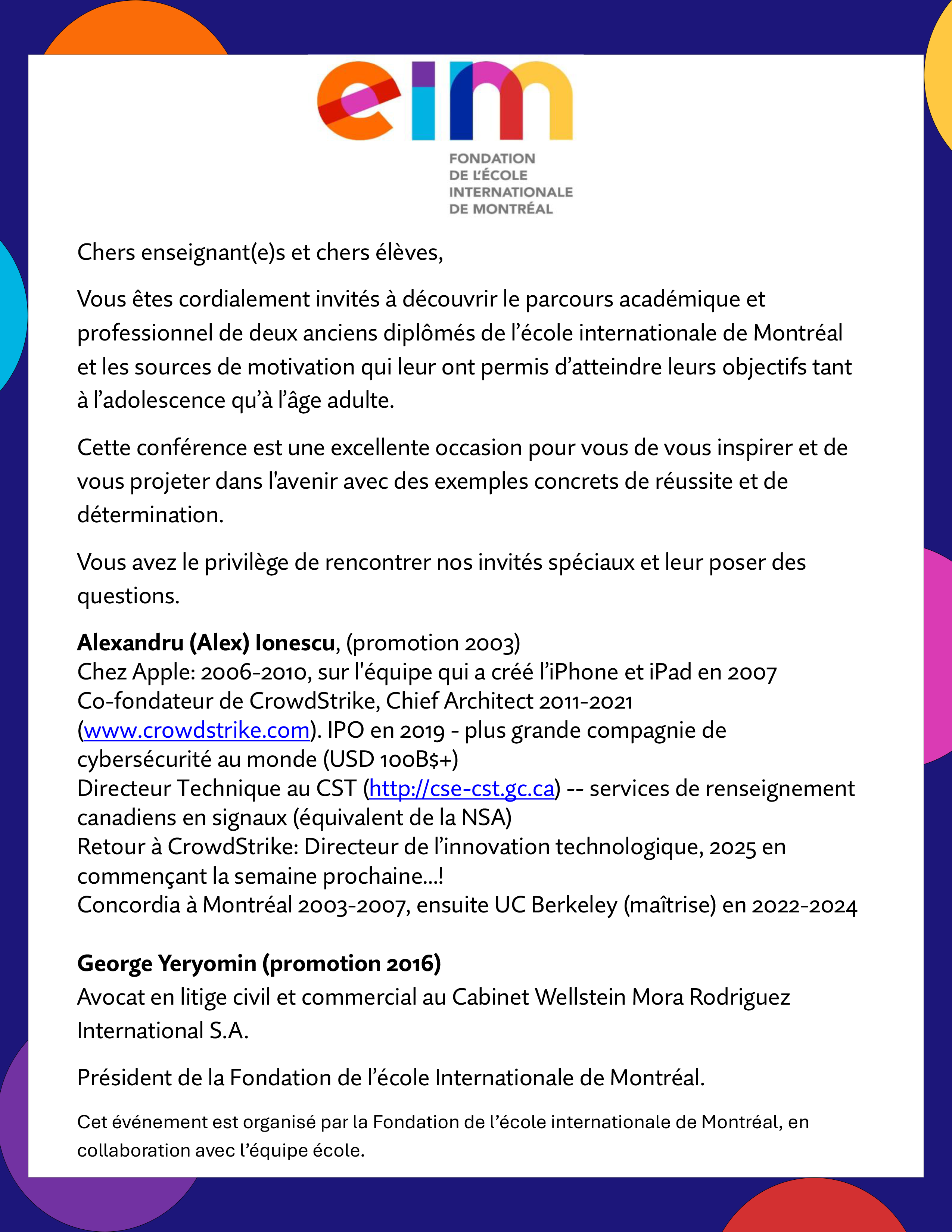 © Fondation de l'École Internationale de Montréal | info@fondationeim.org